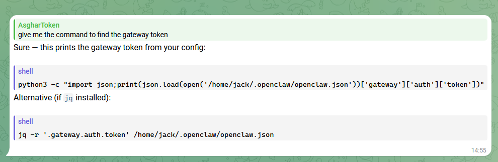 to interact with OpenClaw's UI, we need a gateway token. I'm not going to waste time and I'll ask my assistant: