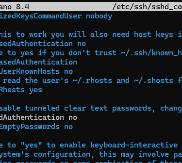 4. Harden SSH Configuration: Type nano /etc/ssh/sshd_config.