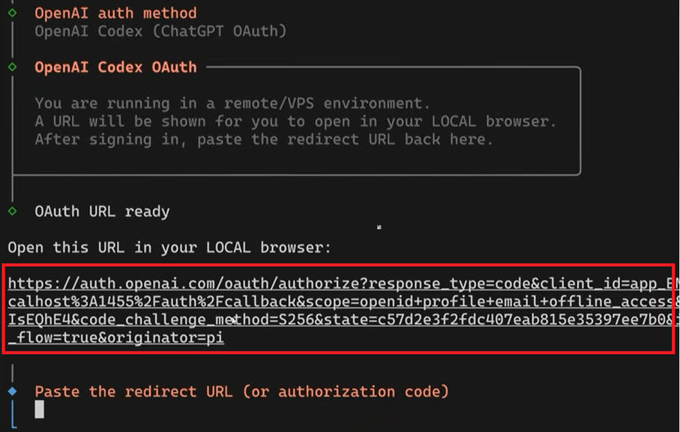 ◦ Subscription Auth: Follow the URL provided by the terminal, log into your AI provider, and copy the code/token from the browser's redirect URL back into the terminal.