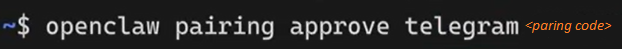 4. Pairing: Message your new Telegram bot /start. It will give you a pairing command (e.g., openclaw pairing approve Telegram). Copy and paste this into your VPS terminal to finalize the connection.