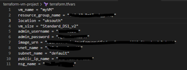 To get started with deploying a virtual machine, all you need to do is modify the terraform.tfvars file with the details of the VM you want to deploy. As shown below, this straightforward process can be completed manually.