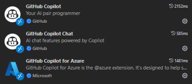 Start vscode and install, Github Copilot, Github Copilot chat and Github Copilot for Azure: