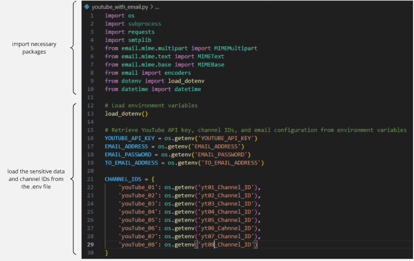 in the above case the channelId is highlighted in yellow. Repeat the above process for all the YouTube channels you are interested in.