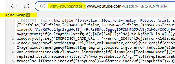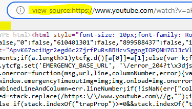 Next we need to identify the YouTube channel IDs for the contents we are interested in. Grab the URL for the video you are interested in, add "view-source:" in front of it and open it in a browser of your choice. For example: