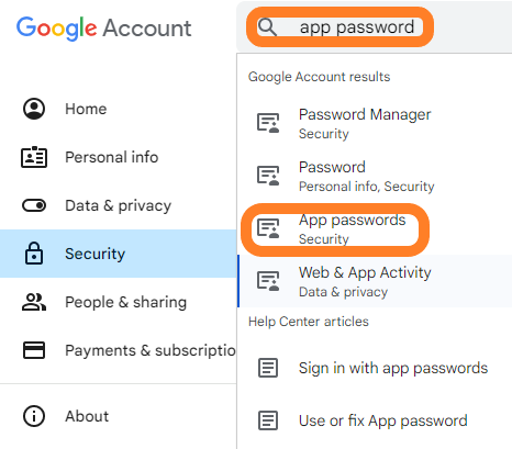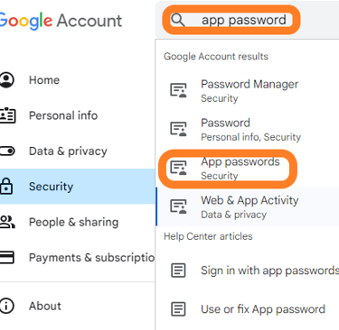 I've created a burner Gmail account for this. App Passwords can only be used with accounts that have 2-step verification turned on. Once done, go to the security section of your Gmail account and search for "app password"