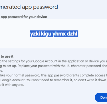 A Google app password allows the code access to Google's SMTP server, this provides email functionality and enables the code to send emails out.