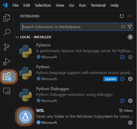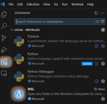 With WSL2 enabled and verified, install vscode followed by the WSL extension for vscode.