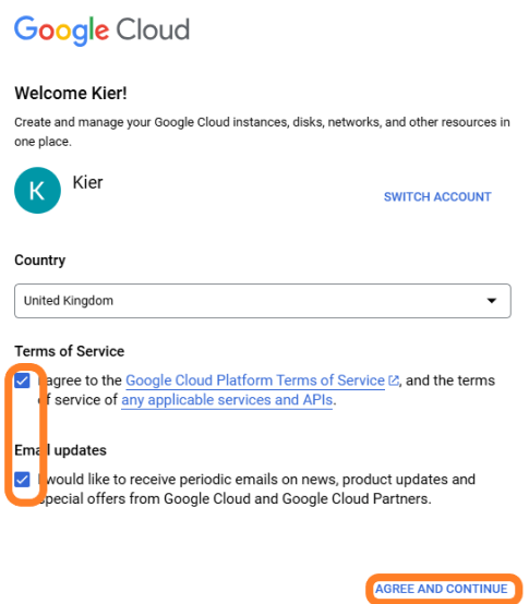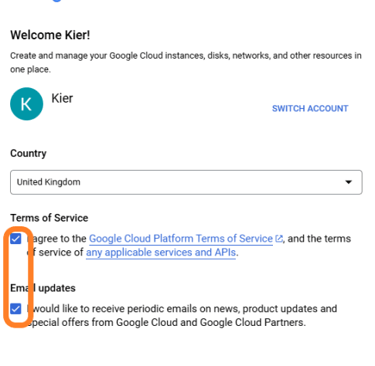 create your Google cloud instance:
