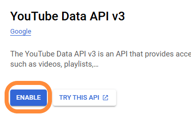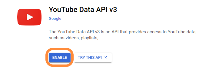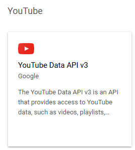 Navigate to API library and select YouTube Data API v3: