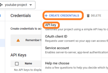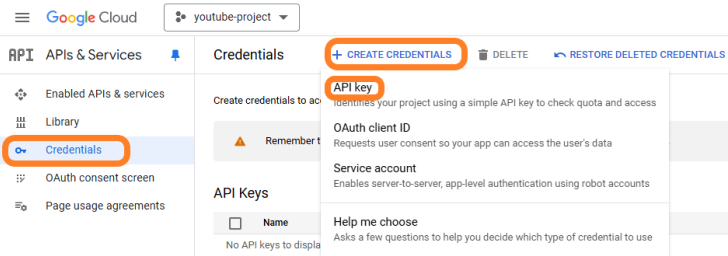 Create YouTube api key