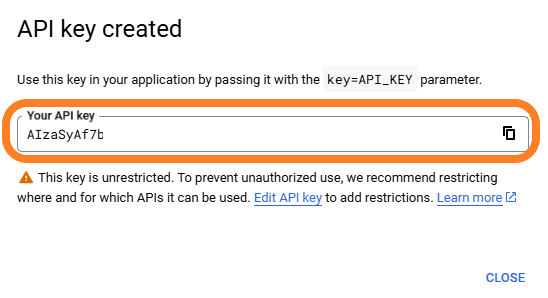 your API key is created: