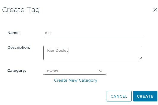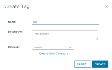 Login to the vCentre and create the tag categories for Operating system, owner and location from "Tags & Custom Attributes". Later on we will use these categories to tag all VMs: