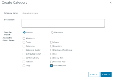 vSphere Tags: To facilitate the tagging process, we have created three pre-defined tag categories in our vCenter:
