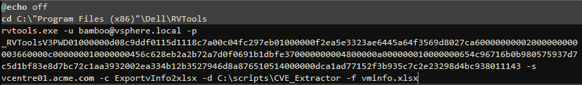 The batch file that runs RVTools that only extracts vinfo from the vCentre is listed below: